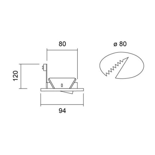für Halogen- oder LED-Lampen, Befestigung mit seitlichen trapezförmigen Balttferdern, einfacher Lechtmiitelwechsel, Ring mit Bajonettverschluss D/Da/Eh=94/80/60mm