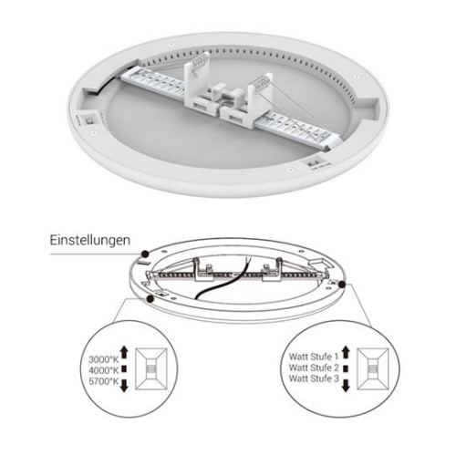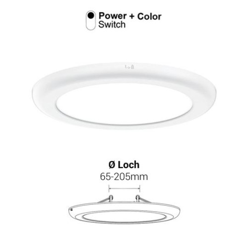CRI80, IP20, Ein/Aus ED Downlight oder Anbauleuchte mit opalem Diffusor, mit integriertem Betriebsgerät für Ein/Aus Betrieb, verstellbare Lichtfarbe 3000/4000/5700°K und Leistungsstufen 10/13/16W an der Leuchte, Farbwiedergabe CRI 80, Mittlere Lebensdauer 40000 Stunden/L70 bei Ta 25°C, Ausstrahlwinkel 120°, für Umgebungstemperatur Ta: -20°...45°C, Schutzgrad IP20, Schutzklasse ll, Normen: CE, Gehäuse aus Aludruckguss & Kunststoff, Gehäusefarbe weiss, opaler Diffusor aus Polycarbonat, Befestigung mit verstellbaren Torrsionsfedern Ø Lochauschnitt: 65-205mm oder Anbaubügel, Garantie: 2 Jahre. SYNO UNIVERSAL - eine innovative Lösung für eine effiziente und vielseitige Beleuchtung bei Renovierungsprojekten. Die SYNO UNIVERSAL bietet eine beeindruckende Palette von Funktionen, die es Ihnen ermöglichen, die Beleuchtung nach Ihren individuellen Bedürfnissen anzupassen und dabei höchste Qualitätsstandards zu erfüllen. Vielseitige Anwendungsmöglichkeiten: LED Downlight oder Anbauleuchte Die SYNO UNIVERSAL Sanierungsleuchte wurde speziell für unterschiedliche Anwendungsszenarien entwickelt. Sie kann entweder als elegantes LED Downlight in Decken eingebaut oder als Anbauleuchte montiert werden. Ihr opaler Diffusor sorgt dabei für eine gleichmäßige und angenehme Lichtverteilung, die ein harmonisches Raumgefühl schafft. Individuell einstellbare Lichtfarbe und Leistung: Anpassung an jede Situation Mit der SYNO UNIVERSAL haben Sie die volle Kontrolle über Ihre Beleuchtung. Sie können die Lichtfarbe nach Ihren Bedürfnissen einstellen, von warmem 3000°K Licht für gemütliche Atmosphäre bis zu neutralen 4000°K oder kühlem 5700°K Licht für Arbeitsumgebungen. Darüber hinaus bietet die Leuchte drei Leistungsstufen von 10W, 13W und 16W, sodass Sie die Helligkeit genau auf Ihre Anforderungen abstimmen können. Hervorragende Farbwiedergabe und lange Lebensdauer: Qualität, auf die Sie zählen können Die SYNO UNIVERSAL überzeugt mit einer Farbwiedergabe von CRI 80, die eine naturgetreue Darstellung der Farben sicherstellt. Mit einer mittleren Lebensdauer von 40.000 Stunden/L70 bei Ta 25°C garantiert diese Sanierungsleuchte eine lang anhaltende und zuverlässige Beleuchtung für Ihr Projekt. Robuste Bauweise für anspruchsvolle Umgebungen: Qualität trifft Funktionalität Die Sanierungsleuchte SYNO UNIVERSAL ist für den Einsatz in anspruchsvollen Umgebungen konzipiert. Das Gehäuse aus Aludruckguss und Kunststoff bietet nicht nur eine hohe Stabilität, sondern verleiht der Leuchte auch ein ästhetisches Erscheinungsbild. Der opale Diffusor aus Polycarbonat gewährleistet eine blendfreie Beleuchtung und schafft eine angenehme Lichtatmosphäre. Einfache Montage und Flexibilität: Praktische Installation für jedes Projekt Die SYNO UNIVERSAL Sanierungsleuchte kann mit dem verstellbaren Montagebügel mit Torsionsfedern in einem Lochauschnitt von 65-205mm befestigt werden oder als Anbaubügel verwendet werden. Die einfache Montage und Flexibilität machen sie zu einer idealen Lösung für Renovierungsprojekte aller Art. Zuverlässigkeit und Garantie: Ihre Zufriedenheit steht im Mittelpunkt Wir haben volles Vertrauen in die Qualität und Leistung unserer SYNO UNIVERSAL Sanierungsleuchte. Aus diesem Grund bieten wir eine Garantie von 2 Jahren an, die Ihre Zufriedenheit und Ihr Vertrauen in unser Produkt unterstreicht. Fazit: SYNO UNIVERSAL - Die Wahl für Sanierungsbeleuchtung auf höchstem Niveau Die SYNO UNIVERSAL Sanierungsleuchte vereint modernste Technologie, Flexibilität und hohe Qualität in einem durchdachten Design. Egal, ob Sie ein Downlight für die Decke oder eine Anbauleuchte benötigen, diese Leuchte passt sich Ihren Anforderungen an. Mit ihrer einstellbaren Lichtfarbe, den verschiedenen Leistungsstufen und der robusten Bauweise ist die SYNO UNIVERSAL die ideale Wahl für Renovierungsprojekte, die höchste Ansprüche an Beleuchtung und Design stellen. Investieren Sie in die SYNO UNIVERSAL Sanierungsleuchte und erleben Sie eine Beleuchtungslösung, die Ihren Erwartungen gerecht wird. ØxH= 235x16xmm Ø Lochauschnitt: 65-205mm Einbauhöhe= 50mm