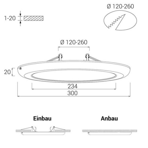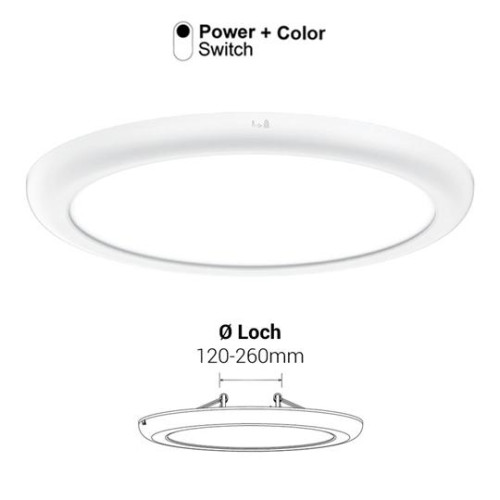 CRI80, IP20, Ein/Aus ØxH= 300x20xmm Ø Lochauschnitt: 120-260mm Einbauhöhe= 50mm