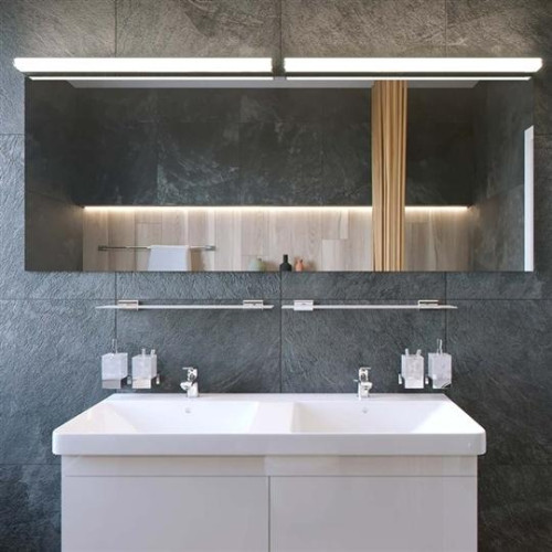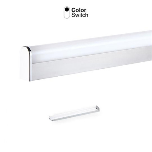 LED Wand- Spiegelleuchte IP44, einstellbare Lichtfarbe 3000/4000°K, integrierter LED Konverter für Ein/Aus Betrieb, Farbwiedergabe CRI90, für Umgebungstemperatur Ta: -10°...30°C, Gehäuse aus Aluminiumdruckguss, Gehäusefarbe chrom, Schutzklasse I, IP44, Lebensdauer 30`000h/L80 B20, 5 Jahre Garantie. LxBxH: 586x78x40mm