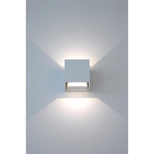 LED Wandleuchte direkt und indirekt leuchtend mit einstellbarem Ausstrahlwinkel 8-80°• inkl. Betriebsgerät 230V für Ein/Aus Betrieb • Lichtfarbe 3000°K (+/- 200°K) • Lichtstrom 600 Lumen (2x300lm) (100lm/W netto) • Mc Adams SDCM <6 • Farbwiedergabe CRI 80 • Mittlere Lebensdauer 30000 Stunden/L70 bei Ta 25°C • für Umgebungstemperatur Ta: -15°...50°C • Schutzgrad IP65 • Schutzklasse l • Normen: CE • Gehäuse aus Aluminiumdruckguss • Gehäusefarbe weiss • verstellbarer Ausstrahlwinkel 8-80°• mit 3-poliger Anschlussklemme am Sockel• Fixierung am Sockel mit 2 seitlichen Imbusschrauben • VPE=20 Stück. LxBxH: 102x100x100mm