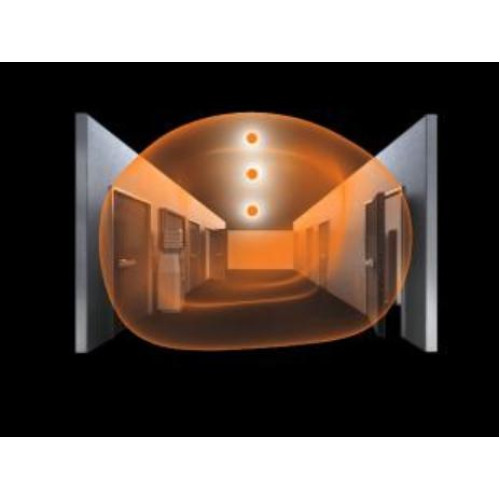 •HF Sensor mit 360° Erfassungsbereich •Erfassung durch Glas, Holz und Leichtbauwände •Energieeffizientes 26 Watt LED Lichtsystem mit Active-Thermo-Control •integrierte 868 MHz bi-direktionale Funkvernetzung •Optional: Fernbedienung RC10 LED-Lebensdauer 50.000 Betriebsstunden Ansprechhelligkeit 2 – 2000 lx Grundlicht 10 – 50% Erfassungswinkel 360° Reichweite 1 – 8 m Nachlaufzeit 5 Sek. – 15 Min. Chassis Aluminium Haube PMMA Betriebstemperatur -10 - +40°C Schutzart IP20 / Schutzklasse II Prüfzeichen CE, ENEC 10 Abmessungen (H x B x T) 331 x 331 x 56 mm