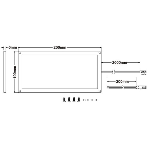 LED Slim Anbau Panel • Betrieb mit 12V DC • LED Chip SMD • Lichtfarbe 3000°K • Farbwiedergabe CRI80 • Ausstrahlwinkel 110° • Lebensdauer 25 000h • 330 Lumen • Micro Diffusor aus PMMA • Gehäuse aus Kunststoff • Gehäusefarbe weiss • Anschlusskabel 2000mm mit verpolungssicherem Stecker • Inklusive Zubehör: 1 x Steckkabel 200mm, 1 x Doppelseitiges Klebetape 200 x 100mm, 4 x Schrauben, 4 x Schraubenabdeckungen • IP20 • Dimmbar mit entsprechendem Konverter • Lieferung ohne Konverter. SLIM PANEL LED ist eine kostengünstige alternative zu OLED Modulen. Mit nur 5mm Höhe, modernsten SMD LEDs und einem speziellen micro Diffusor, welcher auch in modernsten LED TVs verwendet wird, erreicht dieses Modul erstaunliche Lichtwerte. An der 6-fach Verteilerbox (siehe Zubehör Art.-Nr. : 685-A14-Z-001 ) können bis zu 6 Panels angeschlossen werden. Betrieben wird das Modul mit Konstantspannung 12V DC und ist mit den ensprechenden Konvertern dimmbar. Mit dem mitgelieferten Zubehör (Doppelseitiges Klebetape, Schrauben) lässt sich das Panel universell einsetzten. Ob als Treppenbeleuchtung oder Regalbeleuchtung, die Anwendungsbereiche sind nahezu grenzenlos. LxBxH= 200x100x5mm / L Kabel= 2000mm