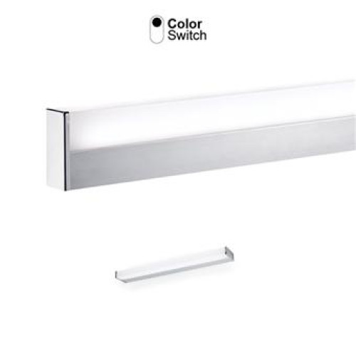 LED Wand- Spiegelleuchte IP44, einstellbare Lichtfarbe 3000/4000°K, integrierter LED Konverter für Ein/Aus Betrieb, Farbwiedergabe CRI90, für Umgebungstemperatur Ta: -10°...30°C, Gehäuse aus Aluminiumdruckguss, Gehäusefarbe chrom, Schutzklasse I, IP44, Lebensdauer 30`000h/L80 B20, 5 Jahre Garantie. Masse: 1186 x 40 x 78mm
