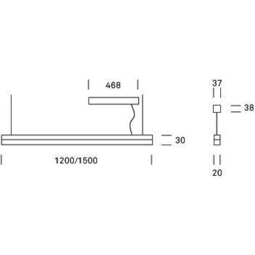 dimmbar DALI/TouchDim L: 1500 mm, Betriebsgerät 230 V/50 Hz, Stahlseilabhängungen L=2500 mm, Kabel transparent L=2500 mm, Leuchtenschutzklasse I, Leuchtenschutzgrad IP 20